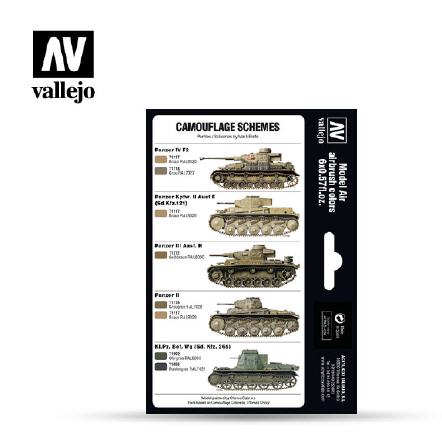 The set contains the colors needed to paint the models of AFV and German vehicles operative in DAK units during the 1941-1944 period, starting with the early references from railway depots applied over the color RAL7021, to the new colors designed especially for this operative environment, and including Olivgrün for the Tunisia units.