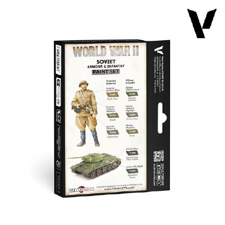 This set, together with the Utility Paint Set, contains all the colors used for the painting of Soviet Army vehicles and infantry soldiers.