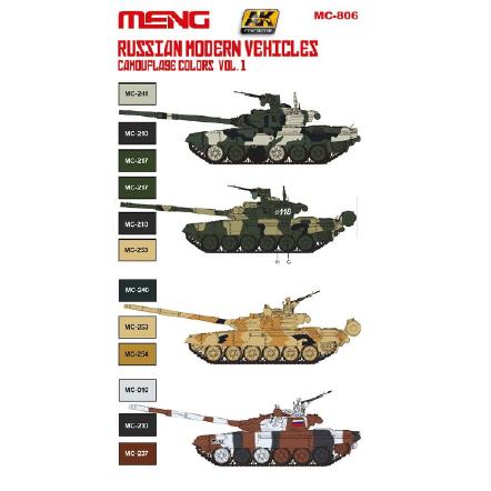 This six color set allows to paint the different modern Russian vehicle schemes. This set can be used combined with the second volume to complete all the colors for the vehicles of the Russian Army and armed forces of many post-Soviet states. This volume 1 includes the three colors needed to achieve the desert colors of the Russian Army.