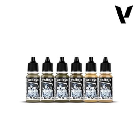 his set, together with the Utility Paint Set, contains all the colors used for the painting of British and German desert Army vehicles and infantry.