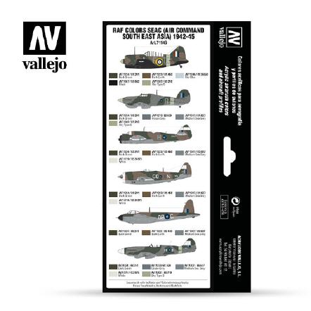This set has been developed for the painting of all types of aircraft of the RAF in the SEAC (Air Command South East Asia) based in the British colonies in the Far East.