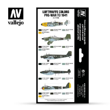 Set of Model Air colors developed for the camouflage patterns of any type WWII Luftwaffe aircraft previous to the WWII and the Spanish Civil War (Condor Legion), as well as for the campaigns and initial phases of the conflict in Poland, Northern Europe, and the battles of France and England.