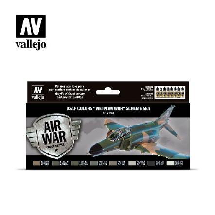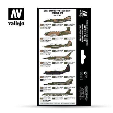 Set with Model Air colors developed for painting aircraft of the USAF deployed in Southeast Asia during the Vietnam War. The camouflage schemes employed for this theater of operations are known as SEA (South East Asia) and a variant of this was used by the SAC (Strategic Air Command) bombers.
