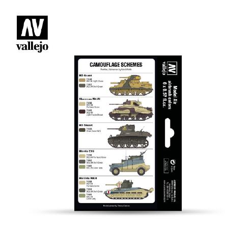 This set contains the colors for the application of the well know British Caunter Camouflage scheme on AFV vehicles, as well as other equipment included in this new ordinance for disruptive camouflage. The colors have been developed especially, following the historical references given in thebook by M. Starmer. Also included are the references Purple Light Brown and Light Stone used for the two-tone camouflage scheme.