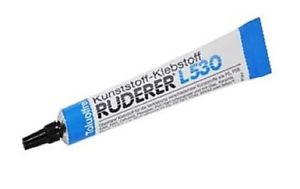 Low-viscosity, colourless, transparent glue for bonding together various types of plastic, including polystyrene, styrene-butadiene (SB), styrene-acrylonitrile (SAN), ABS, celluloid, acrylic (Plexiglas) and rigid PVC. It can also be used for bonding plastics to glass, ceramic, metal, wood, and many other materials.