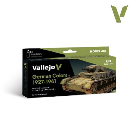 This set contains the colors for painting German vehicles from 1927 to 1941, with camouflage patterns by Euromodelismo.
